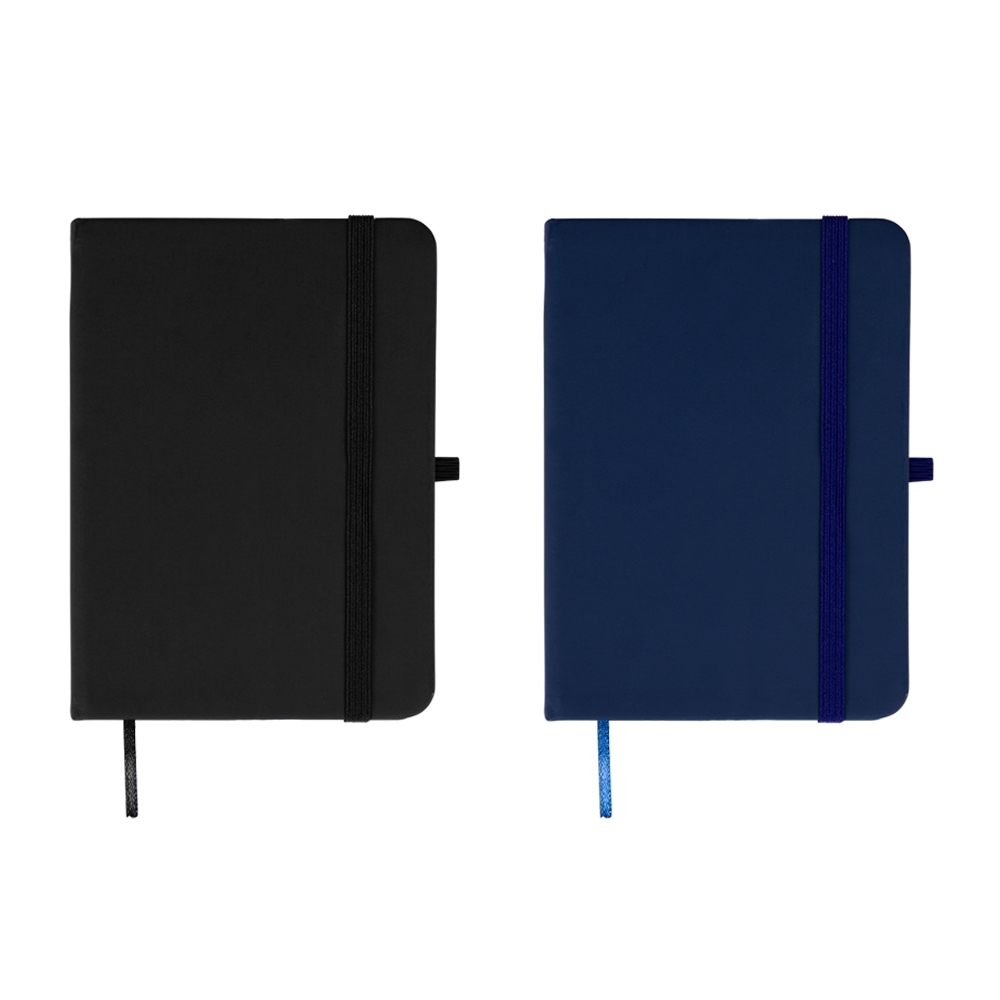 Descrição: Caderneta emborrachada com elástico para lacre, marcador de página em cetim e porta caneta, contém aproximadamente 84 folhas marfim com pauta.