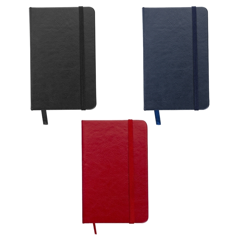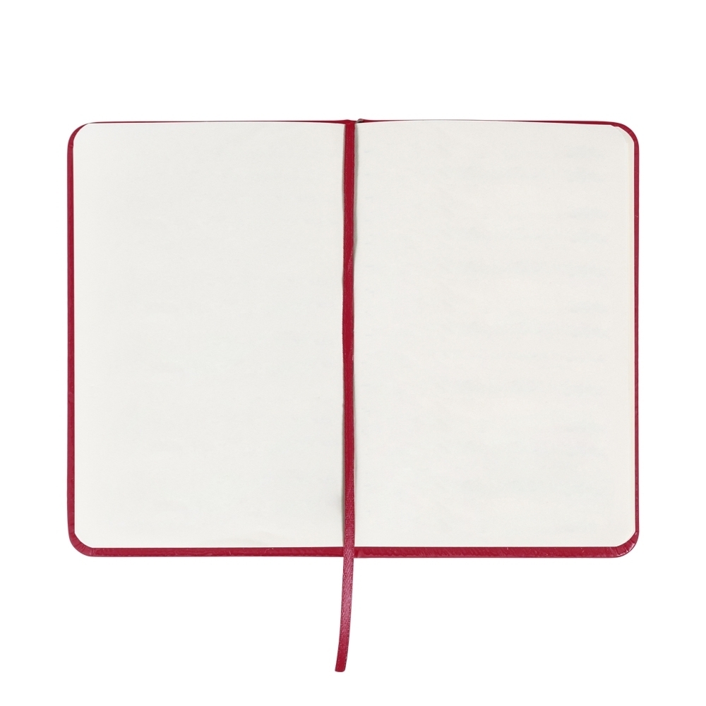 Descrição: Caderneta de couro sintético com elástico para lacre e marcador de página em cetim, contém 80 folhas sem pauta.