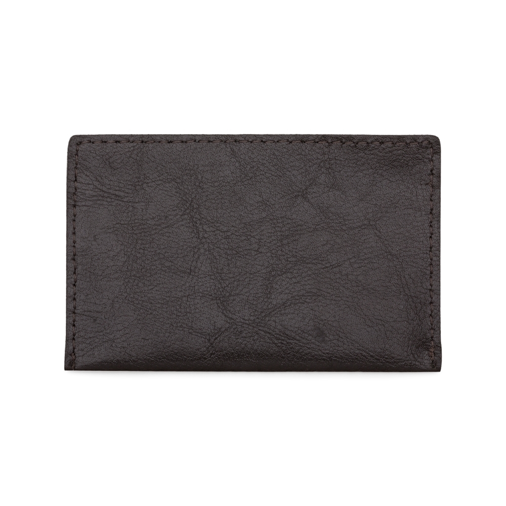 Descrição: Porta cartão em couro sintético com duas divisórias frontais, verso liso.