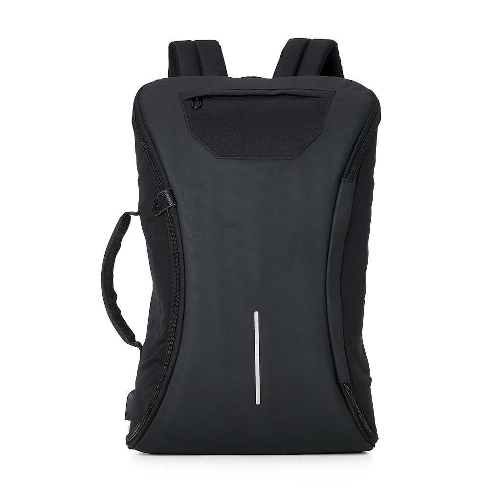 Descrição: Mochila confeccionada em poliéster. Possui dois compartimento principal com divisórias para documentos, eletrônicos e caneta, bolso acolchoado para Notebook até 17 polegadas. compartimento frontal com zíper, compartimento lateral com zíper bolso oculto na parte traseira com zíper. Tecido Impermeável. Compartimento traseiro para ocultação das alças de ombro. Adaptador USB externo com cabo acoplado, permitindo a conexão de um carregador portátil de dentro da mochila e transferência da carga para o lado externo, ocultando o carregador e viabilizando a utilização do celular durante o processo. Contém zíperes com pegadores metálicos, alça de mão em nylon, alças para as costas ajustáveis com revestimento espumado antitranspirante e alça lateral que possibilita que a mochila seja carregada como uma pasta.