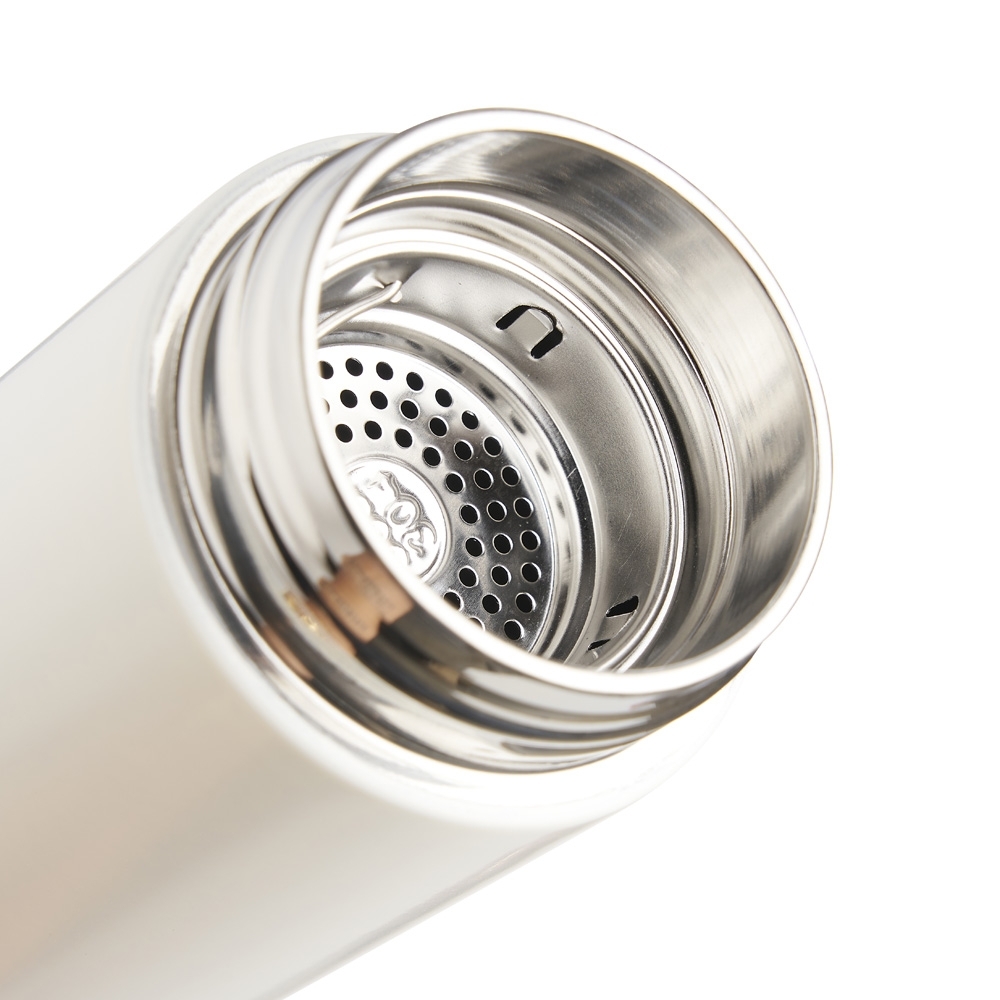 Descrição: Garrafa térmica 500ml feita em aço inoxidável 304, acompanha infusor de bebidas.